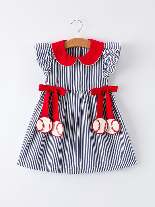 Girls Baseball Team Outfit – Striped Ruffle Sleeve Dress with Ball Design