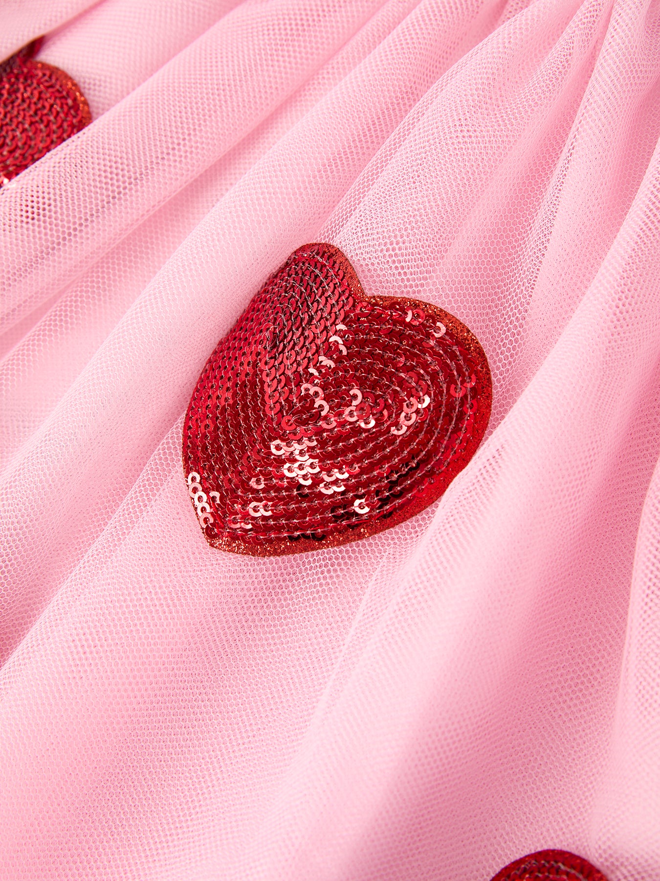Girls' Valentine's Day Skirt with Sequined Heart Appliques