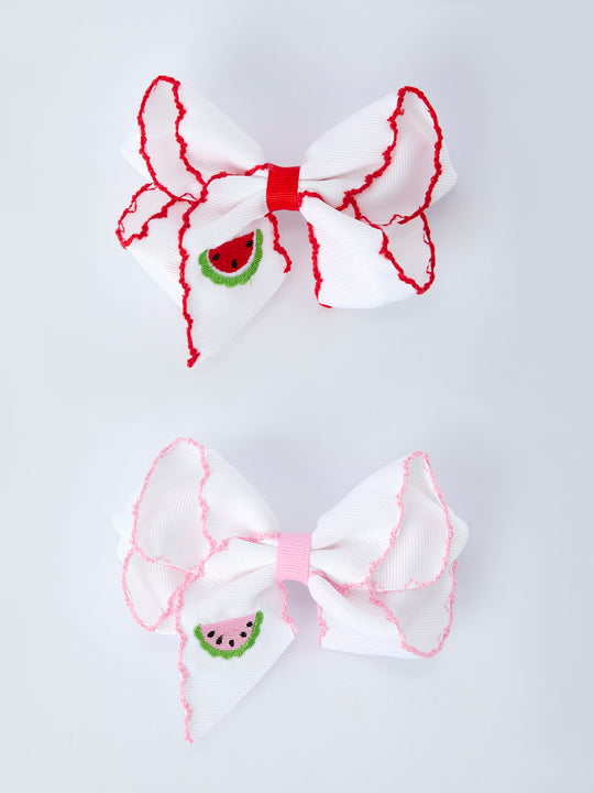 Valentine's Day Heart Embroidered White Girls Bow Hairpin 4 Inch
