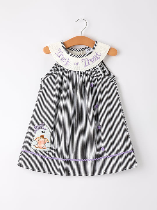 Halloween Striped "Trick Or Treat" Smock Embroidered Baby Girl Dress