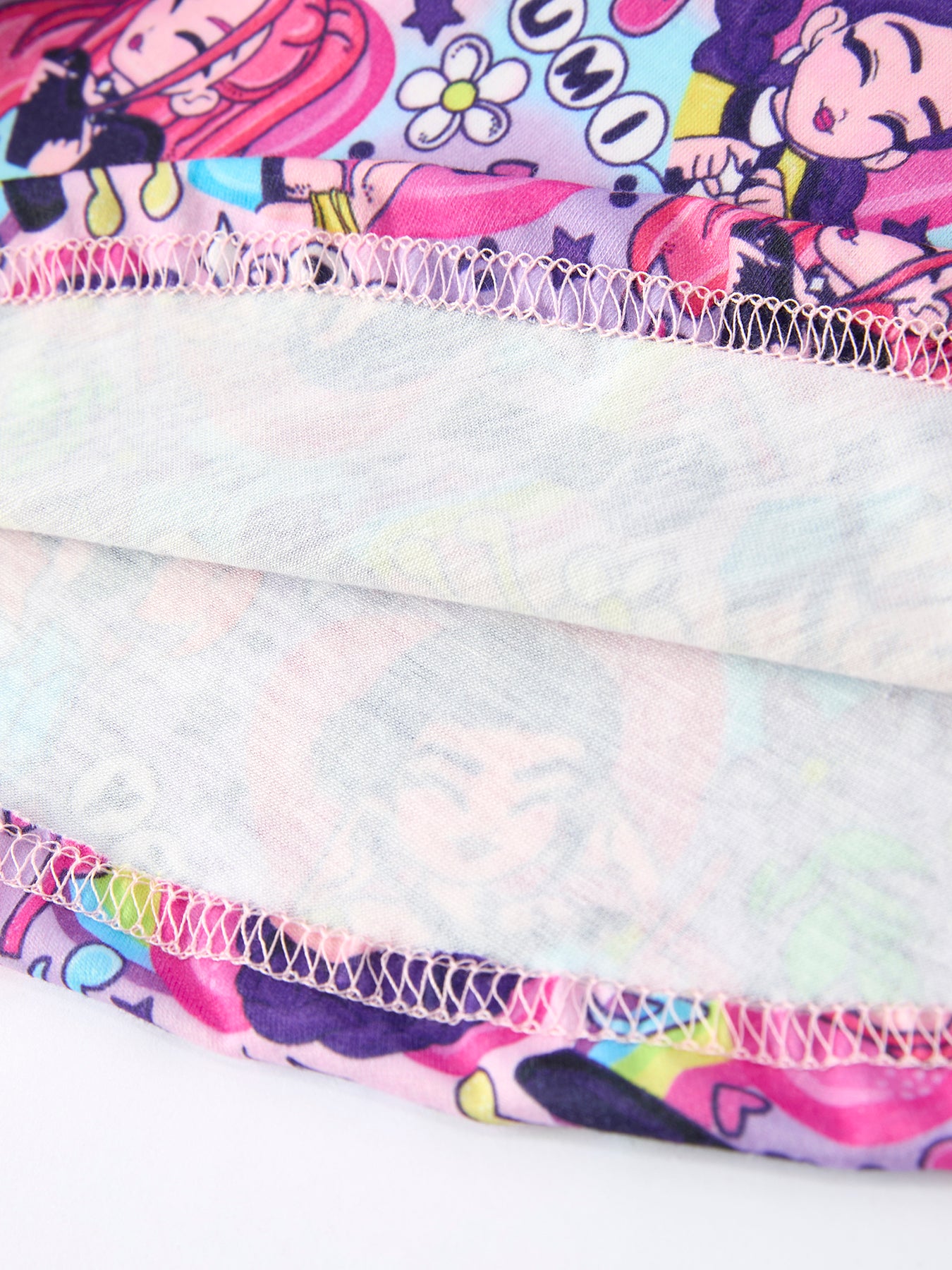 Let your little one express her love of music and favorite characters with this charming short-sleeve dress. Featuring a vibrant purple base adorned with playful character and music-themed prints, it's the perfect blend of fun and comfort for everyday wear or special occasions. The relaxed fit ensures easy movement for active play, while the quality fabric keeps her feeling soft and cozy all day long. A delightful choice for any girl who loves to show off her personality and musical spirit.