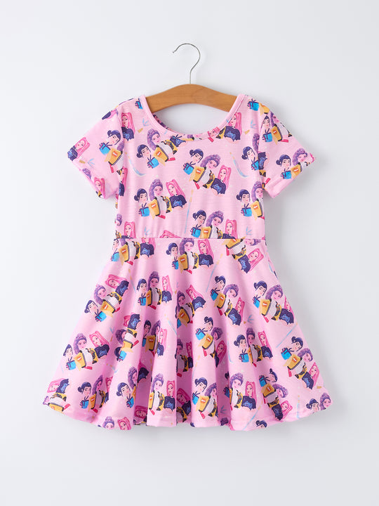 PREORDER Purple Characters Music Print Short Sleeve Girls Dress