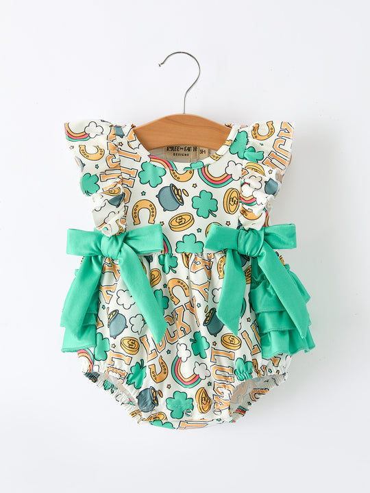St. Patrick's Day Bow Shamrock Print Ruffles Girls Pajama Set