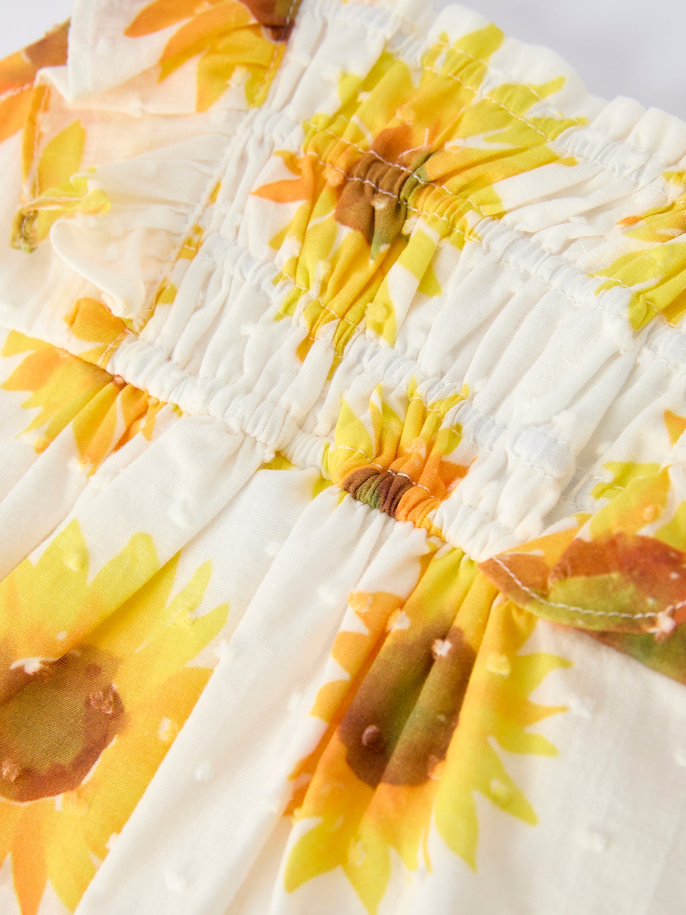 Brighten her wardrobe with this charming Sunflower Girls Smocked Ruffle Romper—a playful one-piece that combines comfort with effortless style. The delicate smocking detail adds texture and visual interest, while the ruffled trim brings a touch of whimsy perfect for warm-weather adventures. Crafted for active little ones, this romper moves with her throughout the day, whether she's playing at the park or attending a special occasion. The cheerful sunflower theme captures childhood joy, making it an instant favorite for both kids and parents who appreciate quality, thoughtfully designed pieces.