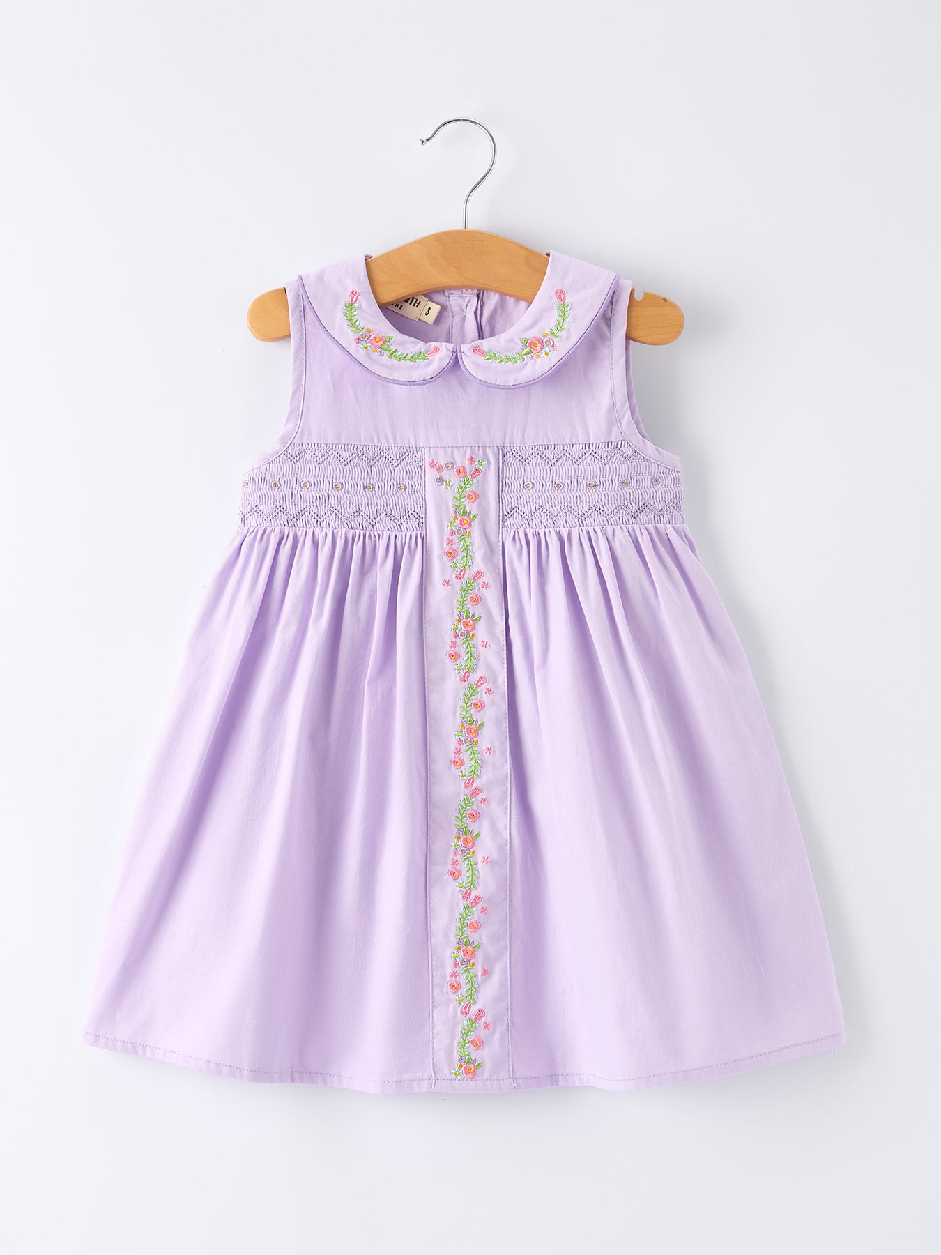Introduce your little one to timeless elegance with this charming floral embroidered girl dress, featuring a delicate lavender Peter Pan collar that adds a touch of vintage-inspired sophistication. The intricate floral embroidery brings character and visual interest to every wear, while the classic Peter Pan collar frames the neckline beautifully. Perfect for special occasions, family gatherings, or everyday moments that deserve a little extra polish, this dress combines comfort with style. Crafted with quality construction, it's designed to withstand active play while keeping your daughter looking polished and put-together.