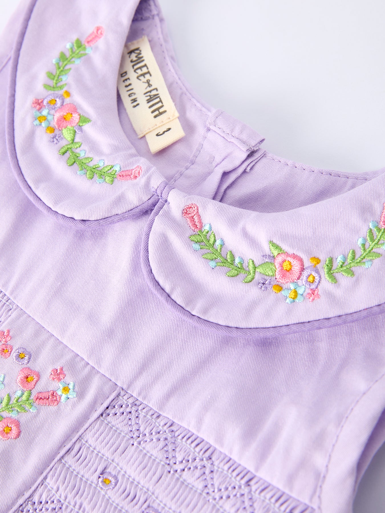 Floral Embroidered Girl Dress with Lavender Peter Pan Collar