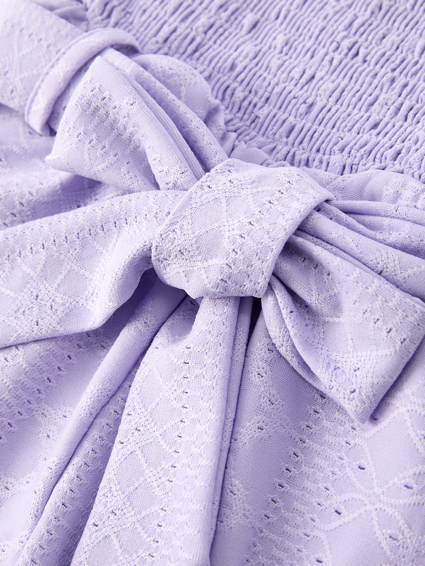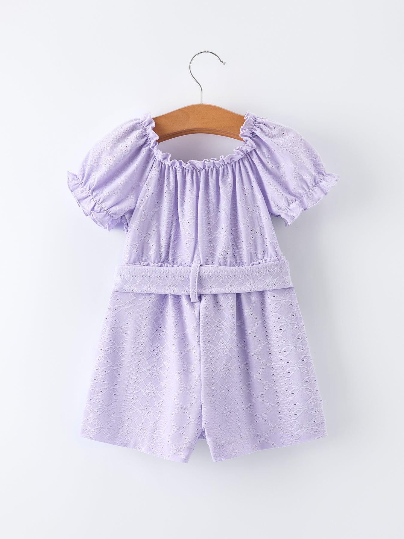 # Spring Purple Short-Sleeved Girls Jumpsuit Effortless style meets comfort in this charming purple jumpsuit, designed for active girls who love looking put-together. The short sleeves keep her cool during spring adventures, while the relaxed fit allows freedom to play, explore, and move with confidence. Perfect for casual outings, playdates, or family gatherings, this versatile piece transitions seamlessly from day to night. The vibrant purple hue pairs beautifully with sneakers or sandals, making it a go-to favorite that works hard in any wardrobe. Quality construction ensures durability through countless wears and washes.