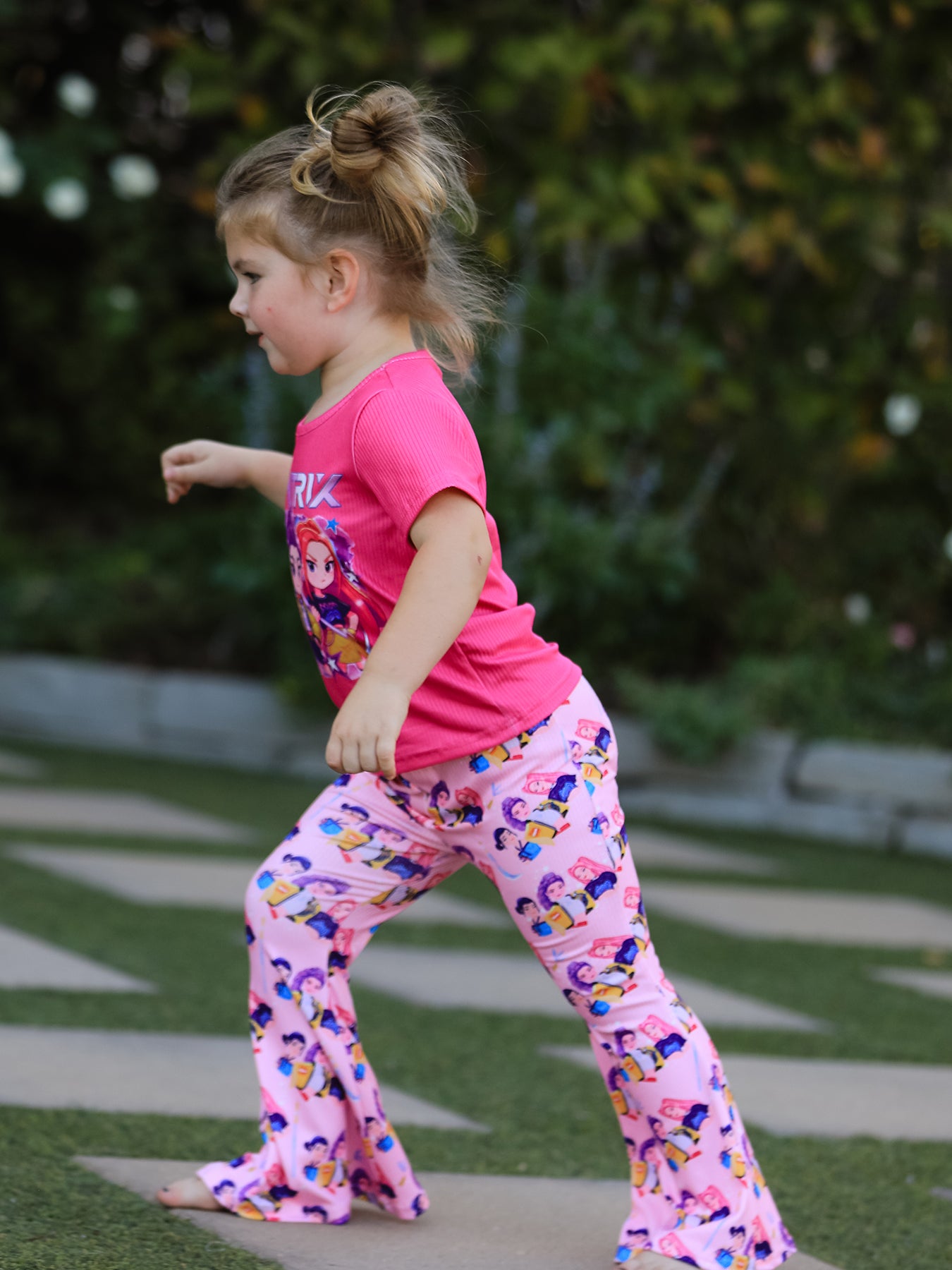 Girls Character Print Short-sleeved Top + Trousers Set
