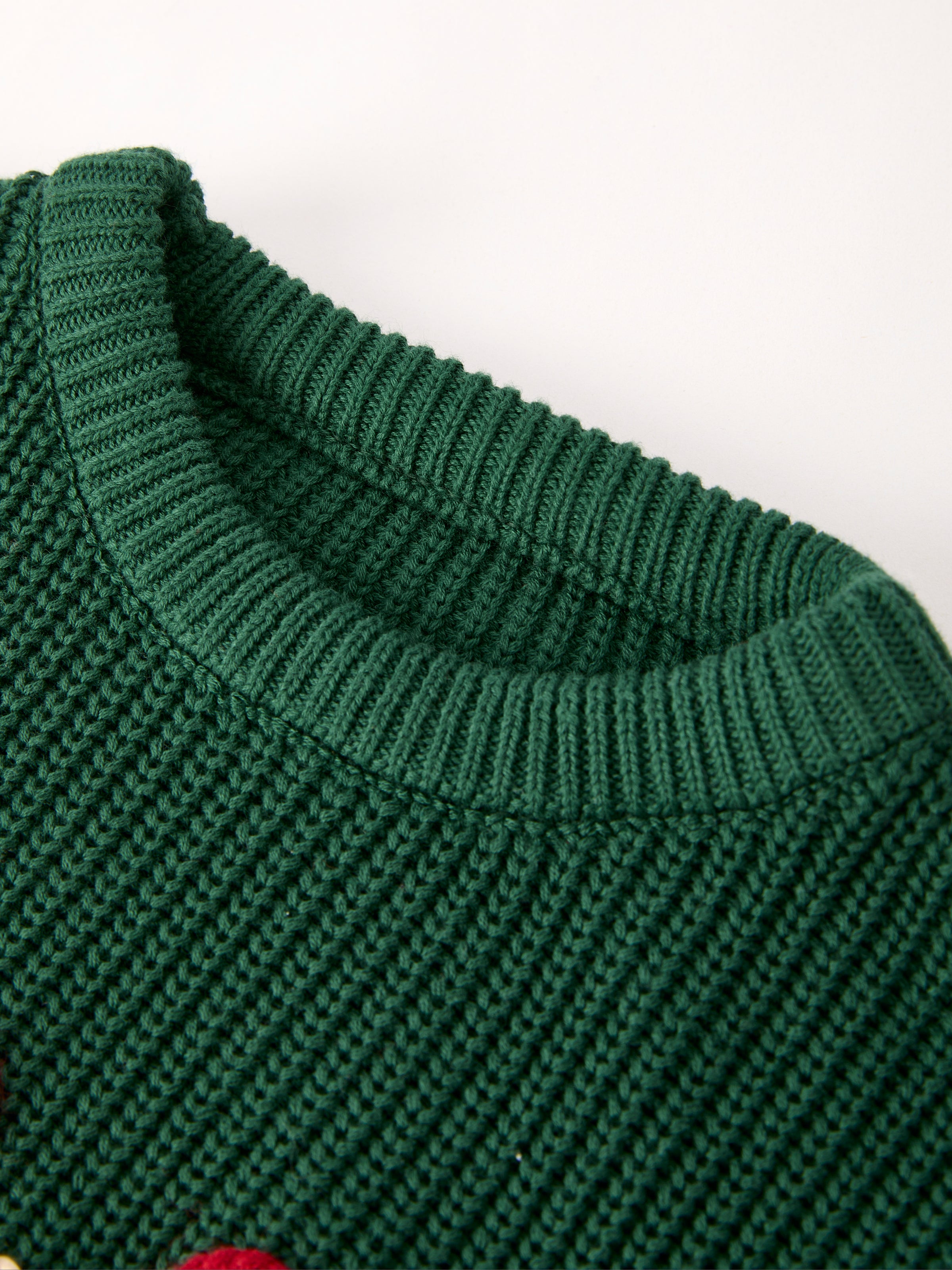 Christmas Winter Bow Dark Green Girls Pullover Sweater
