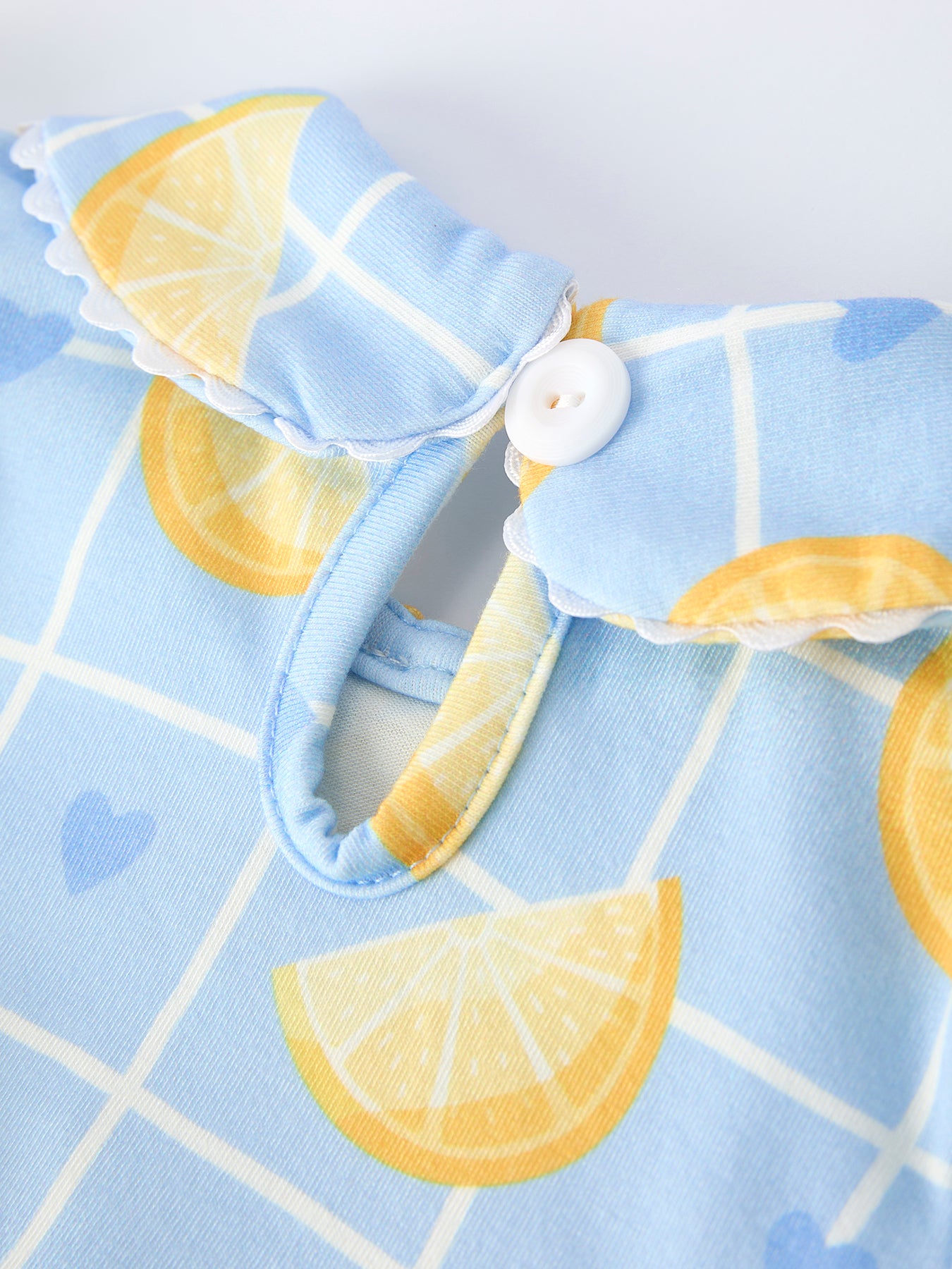 Summer Lemon Print Girls Puff Sleeve Bloomer Set