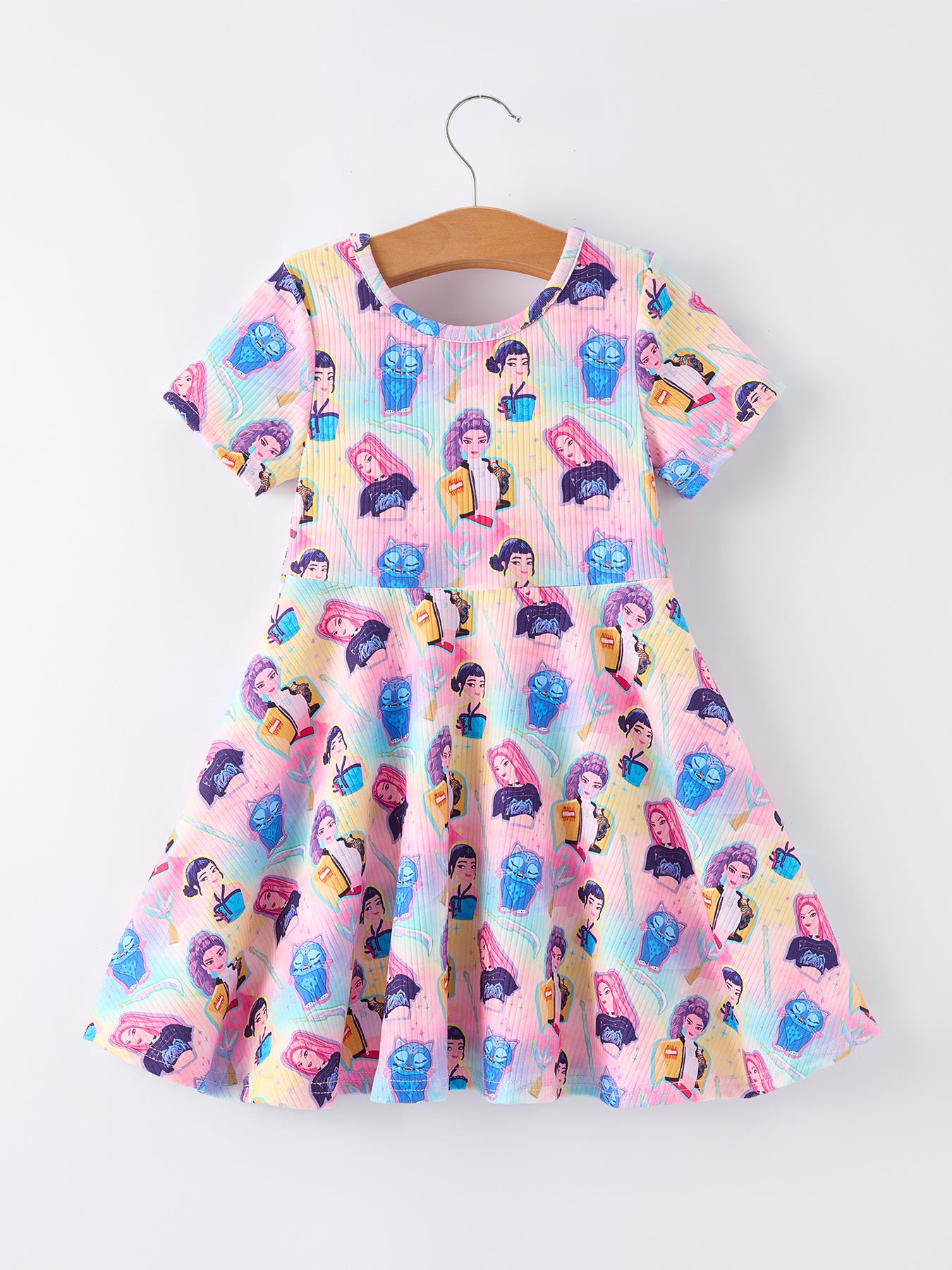 Summer Pop Star Print Girl Twirly Colorful Dress Cotton Blend