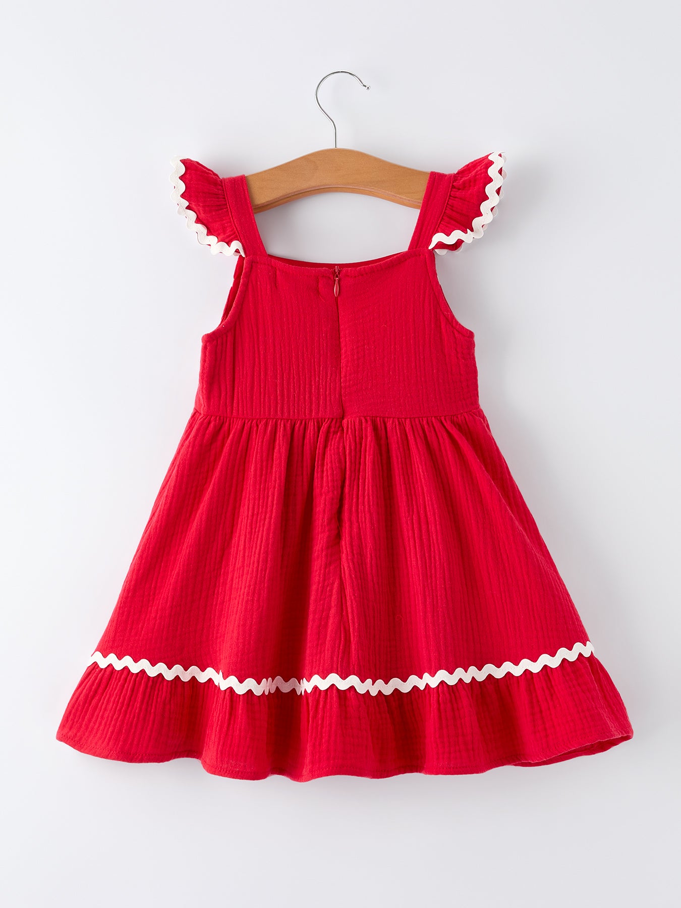 Summer Red Girls Ruffle Trim Dress Brighten her wardrobe with this charming red dress, perfect for warm-weather adventures. The delicate ruffle trim adds a playful touch that captures effortless style, while the lightweight fabric keeps her comfortable all day long. Whether she's heading to a family gathering, outdoor celebration, or casual outing, this dress delivers both versatility and timeless appeal. Easy to care for and designed to last through the season, it's the go-to piece every girl needs in her closet.