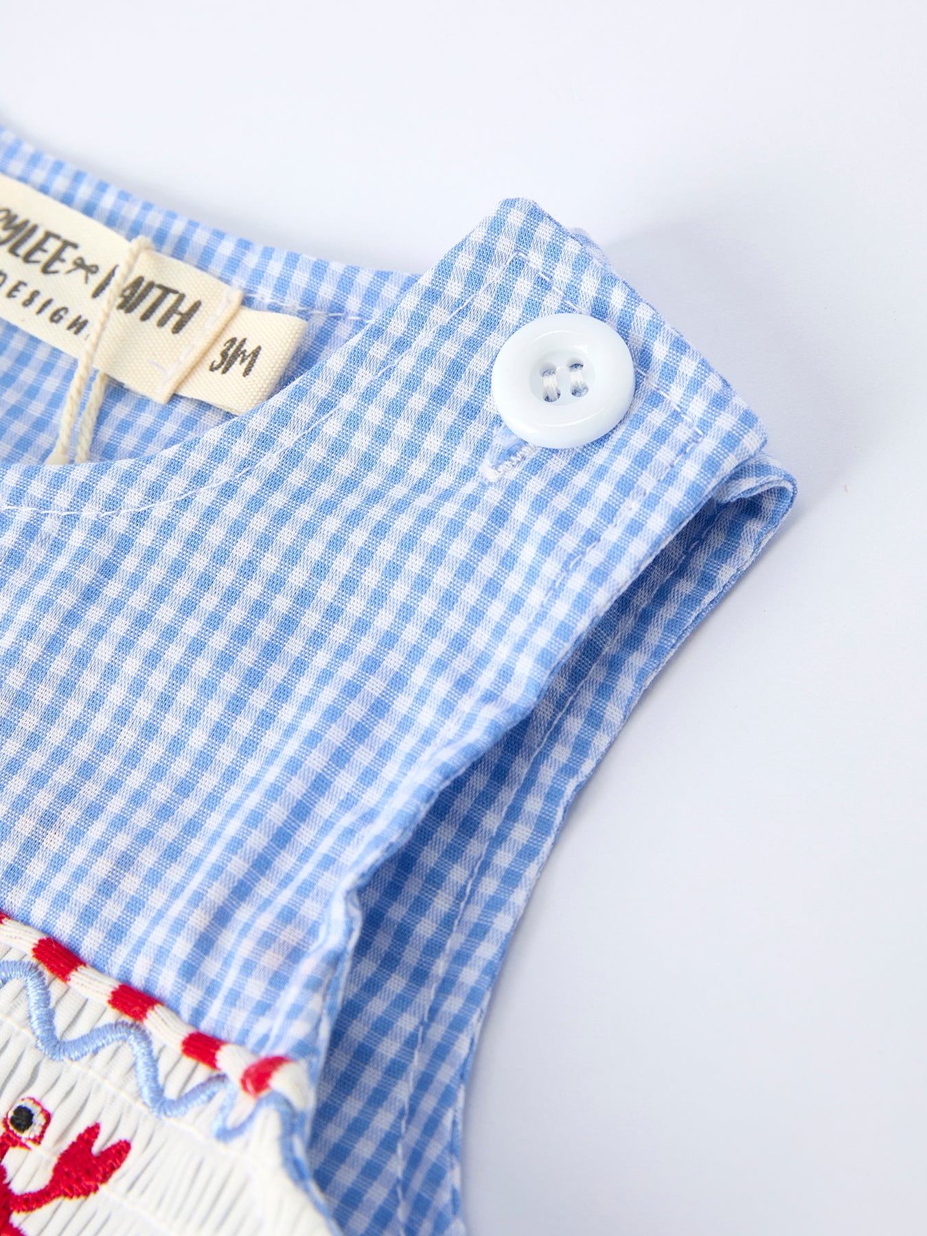 Adorable crab-embroidered smocked romper designed for baby boys who love the beach. This charming one-piece features delicate hand-smocked detailing across the chest and shoulders, creating texture and visual interest that catches every eye. The playful crab embroidery adds a whimsical coastal touch perfect for summer outings, family photos, or special occasions. Crafted from soft, breathable fabric that keeps little ones comfortable all day long. An instant heirloom piece that parents adore and babies love wearing.