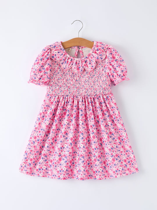 Girls Valentine's Day Floral Ruffle Smocking Baby Bubble Romper