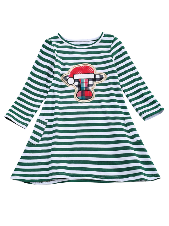 Christmas Girls Long Sleeve Dress with Character& Reindeer Print