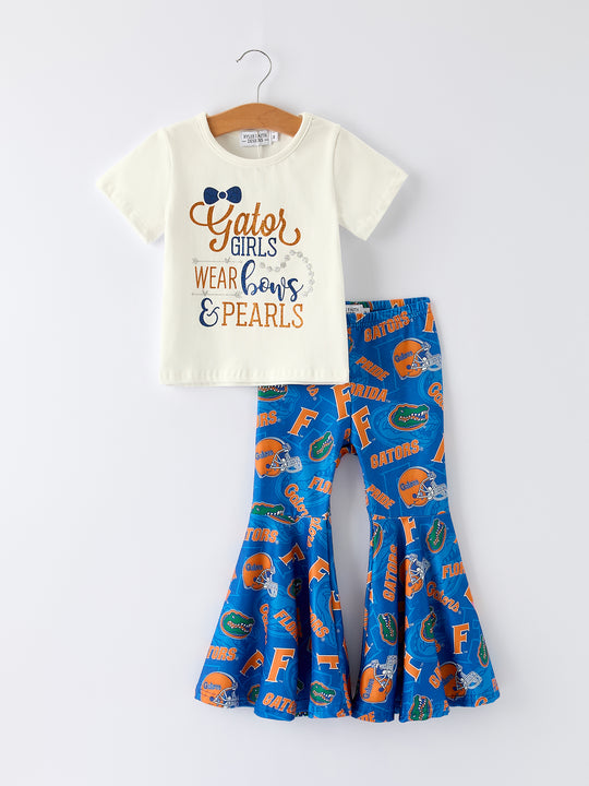 Girls Sports Style Outfit with Football Bell Bottoms and Letter Print Top