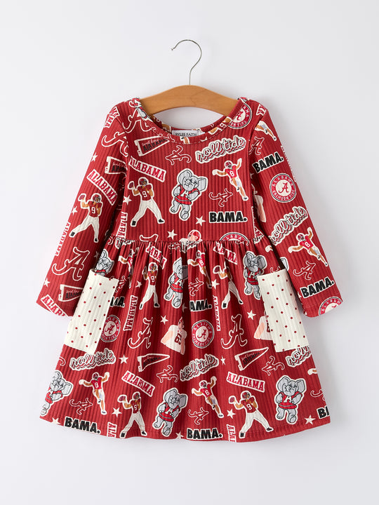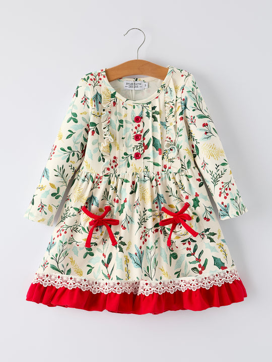 Toddler Girls Christmas Dress – Holiday Floral Print Outfit with Pockets