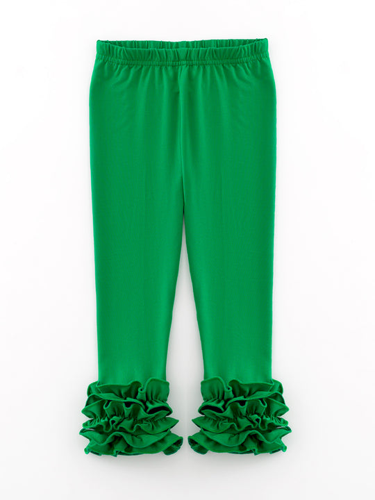 Christmas Tree Applique Red Plaid Top with Green Bell Bottom Pants Girls Set