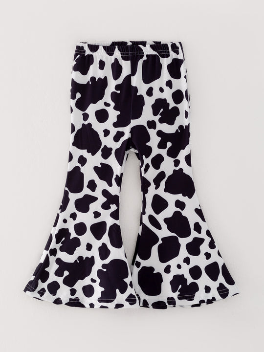 Girls Cartoon Print Top+Bell-Bottom Pants Milk Silk Pink Outfits