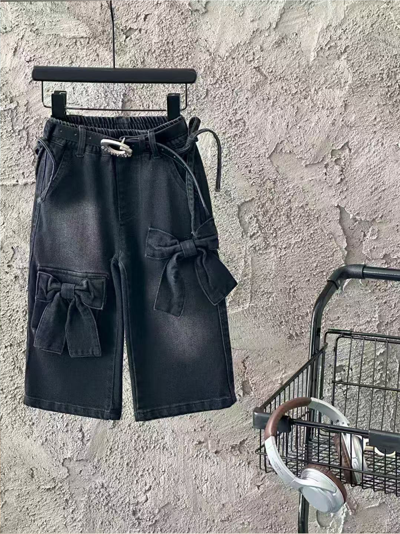(Pre-Order)Girls Bow Stretch Wide-Leg Jeans No Belt