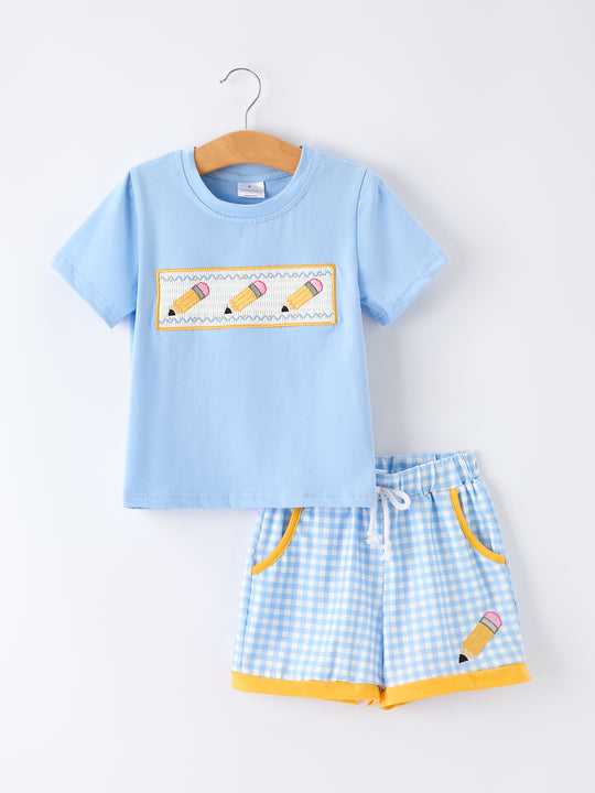 Girls Back To School Pencil Twirl Dress Bow Applique Smocked