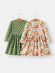 Celebrate the season in style with this Fall Thanksgiving & Halloween Pumpkin Floral Print Long Sleeve Dress set. Featuring vibrant pumpkin and floral patterns, these long-sleeve dresses offer cozy comfort and festive charm. Perfect for autumn gatherings, they blend seasonal spirit with elegant design, making you stand out at any event. Enjoy the convenience of two dresses in one purchase, ideal for mixing and matching or gifting. Embrace the warmth and beauty of fall with this must-have wardrobe addition.