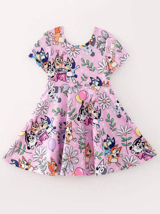 Festive Holiday Christmas Girls Dress with Colorful Balloon and Characters