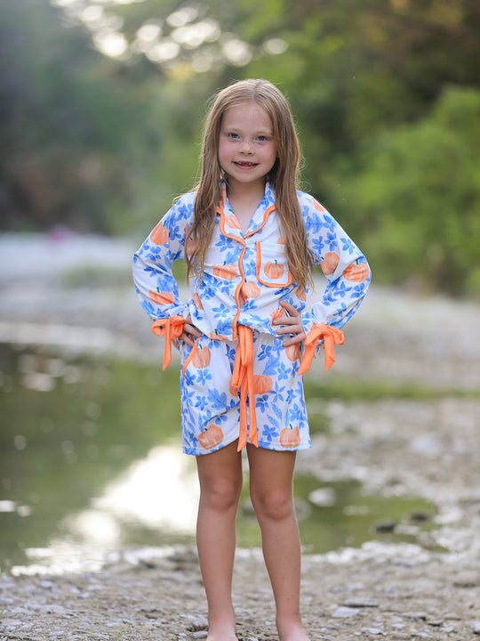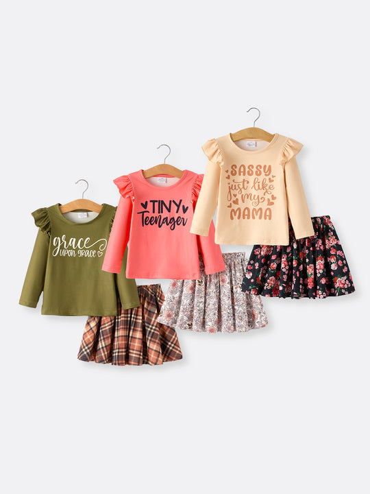 Autumn and Winter Plaid Floral Letter Girls Outfit 6-Piece Set