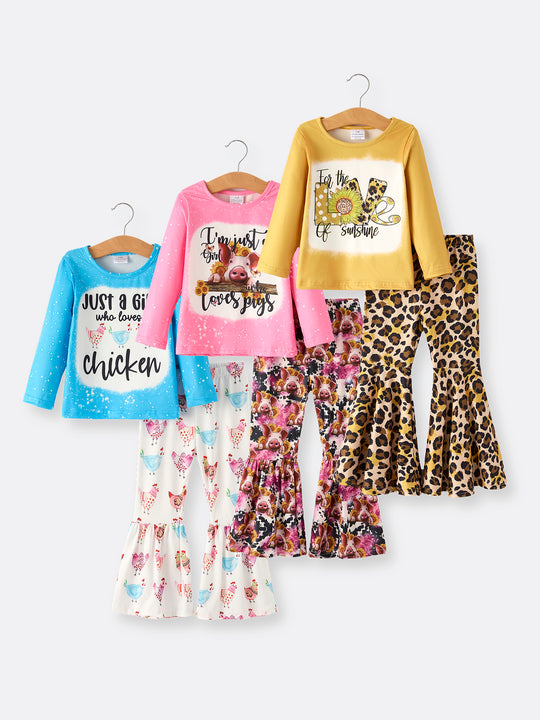 Farm Leopard Letter Hen Print Bleached Girls Set 6-Piece Set