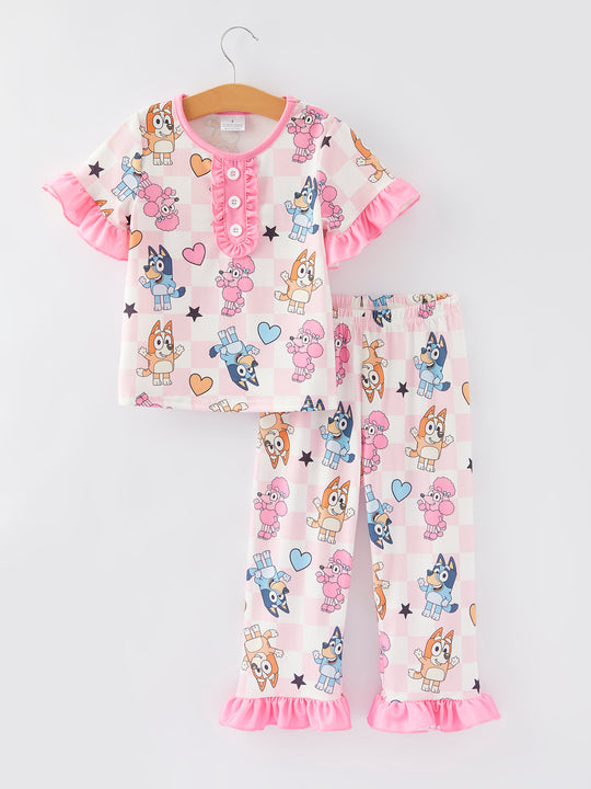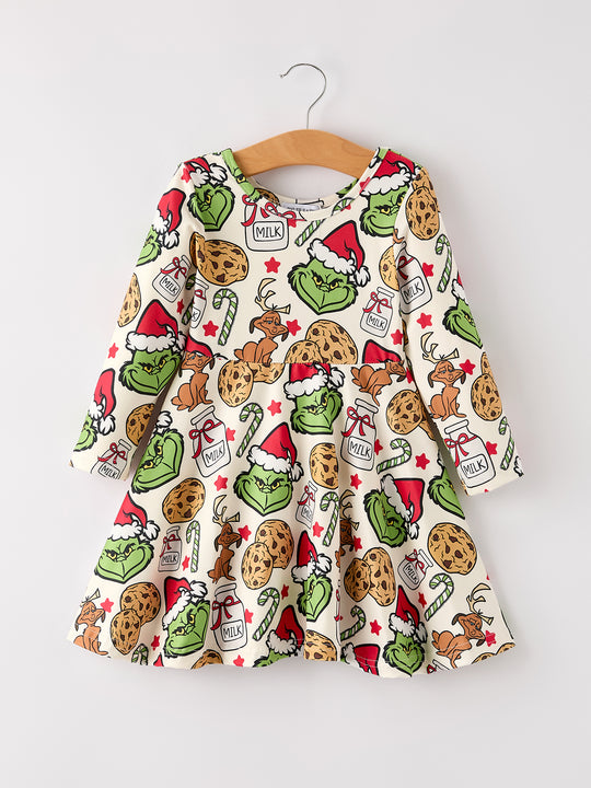 PREORDER Green Christmas Character Bow Print Girls Pajama Set