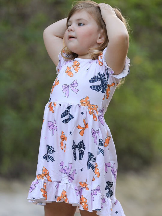 Mommy & Me Christmas Bow Print Girls Outfit with Green Furry Bell Bottoms