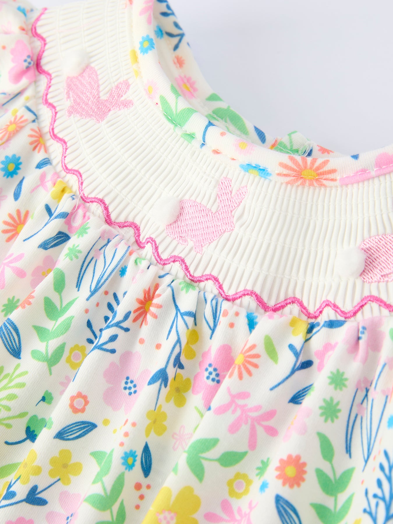 Easter Bunny Embroidered Pom-Pom Short-Sleeved Girls Romper
