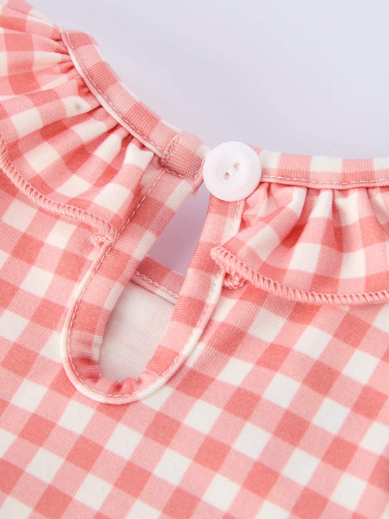 Girls Baseball Bow Smocking Embroidery Plaid Romper