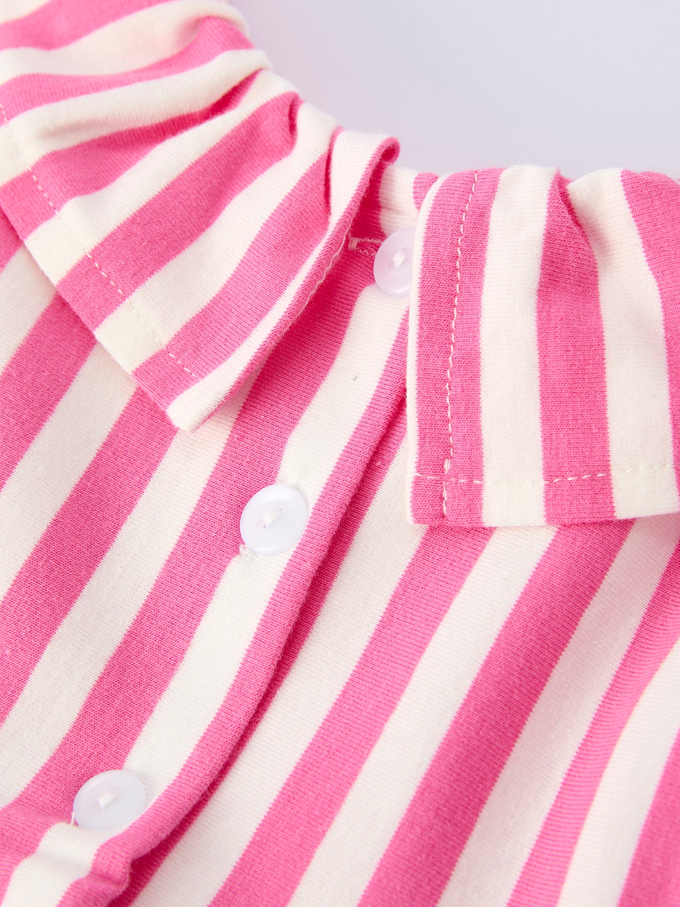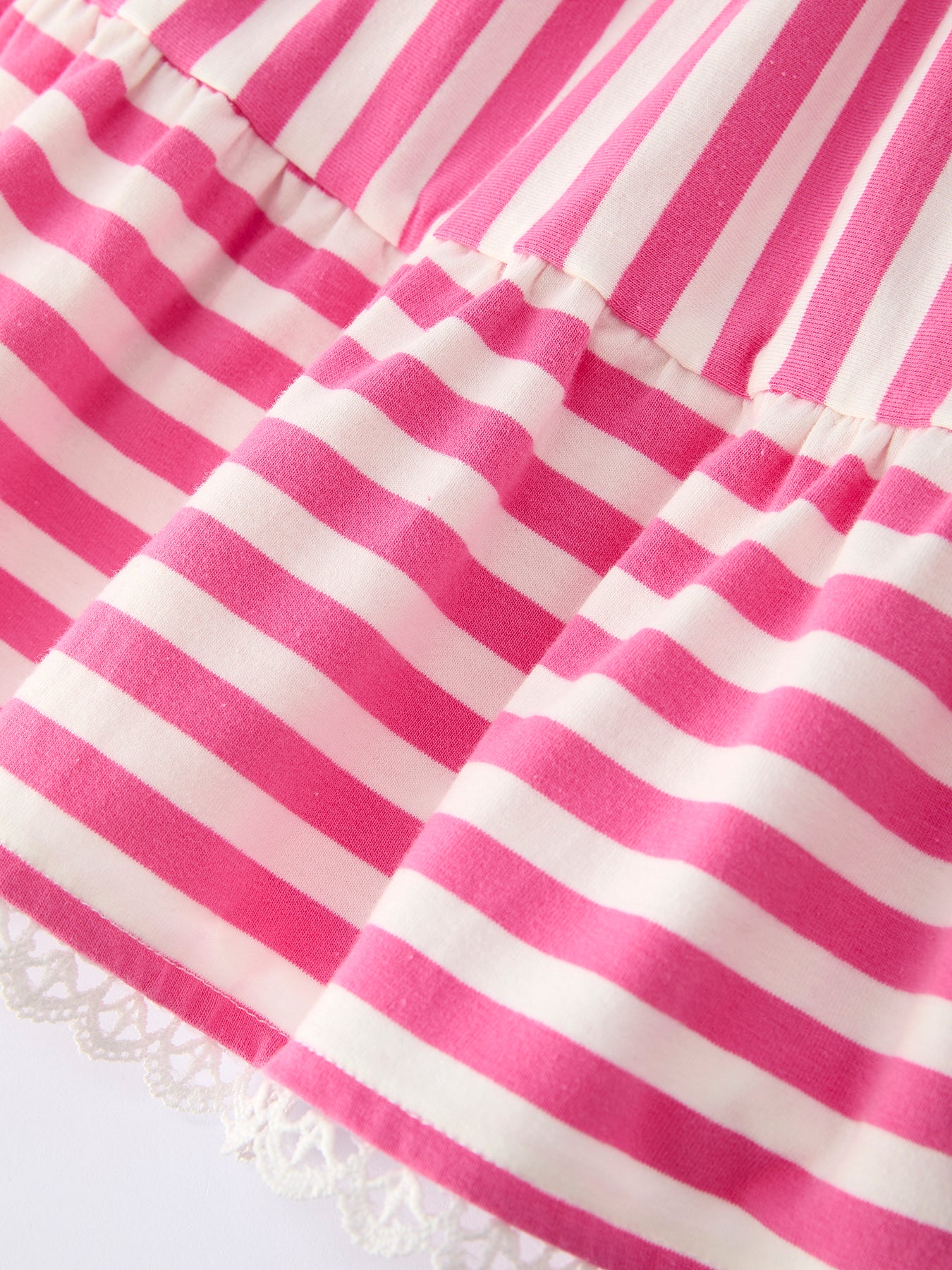 # Spring Pink Striped Ruffled Girls' Dress Brighten her wardrobe with this charming spring essential. Soft pink stripes paired with delicate ruffled details create a playful, feminine look that's perfect for warm-weather adventures. The lightweight fabric keeps her comfortable during outdoor play, while the classic striped pattern pairs effortlessly with her favorite accessories. Ideal for casual outings, family gatherings, or photo-worthy moments, this dress combines timeless style with everyday wearability. A versatile piece that grows with her through the season.