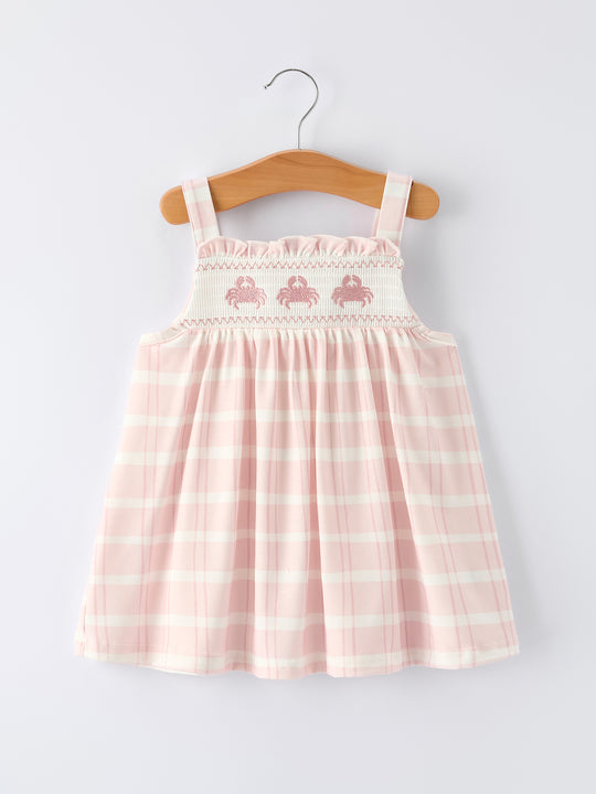 Girls Blue Striped Baseball Applique Smocked Dress Flutter Sleeves