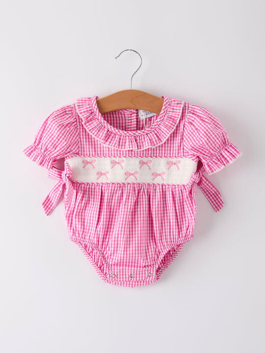 Pink Smocked Church Christ Bishop Christening Bow Baby Girl Romper