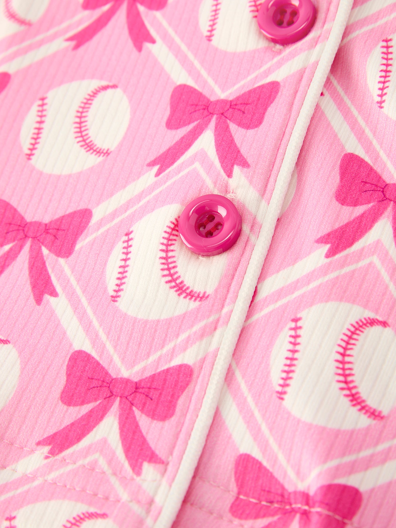 Girls Baseball Bow Print Pajama Set Short Sleeve Pink