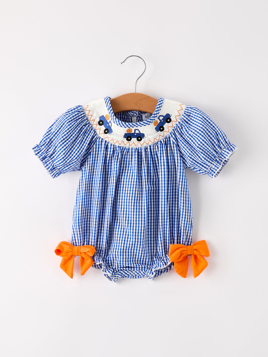 Fall Thanksgiving & Halloween Truck Smock Embroidery Baby Girl Romper
