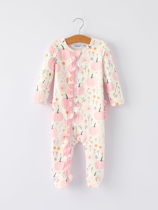Autumn Halloween Thanksgiving Pumpkin Embroidery Smock Floral Girls Romper