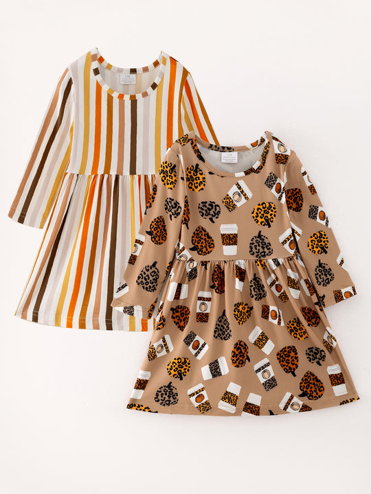 Fall Thanksgiving Day Set Of 2 Pcs In One Package Girls Leopard Print Dress