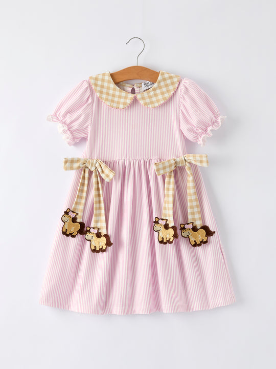 Girls Pink Dress with Bow Pattern - Cute Short Sleeve Outfit
