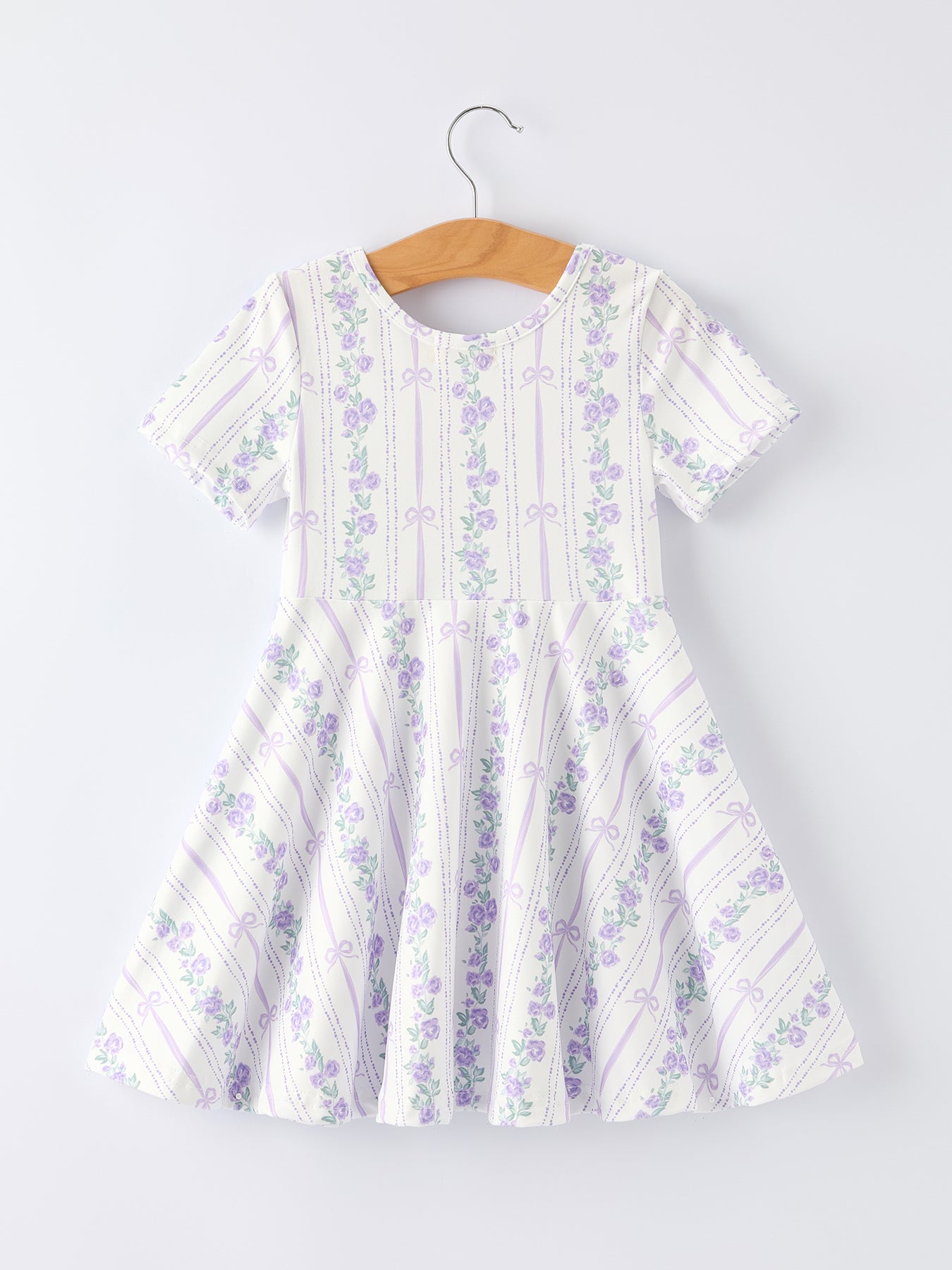 Floral Bow Stripe Print Girl Dress