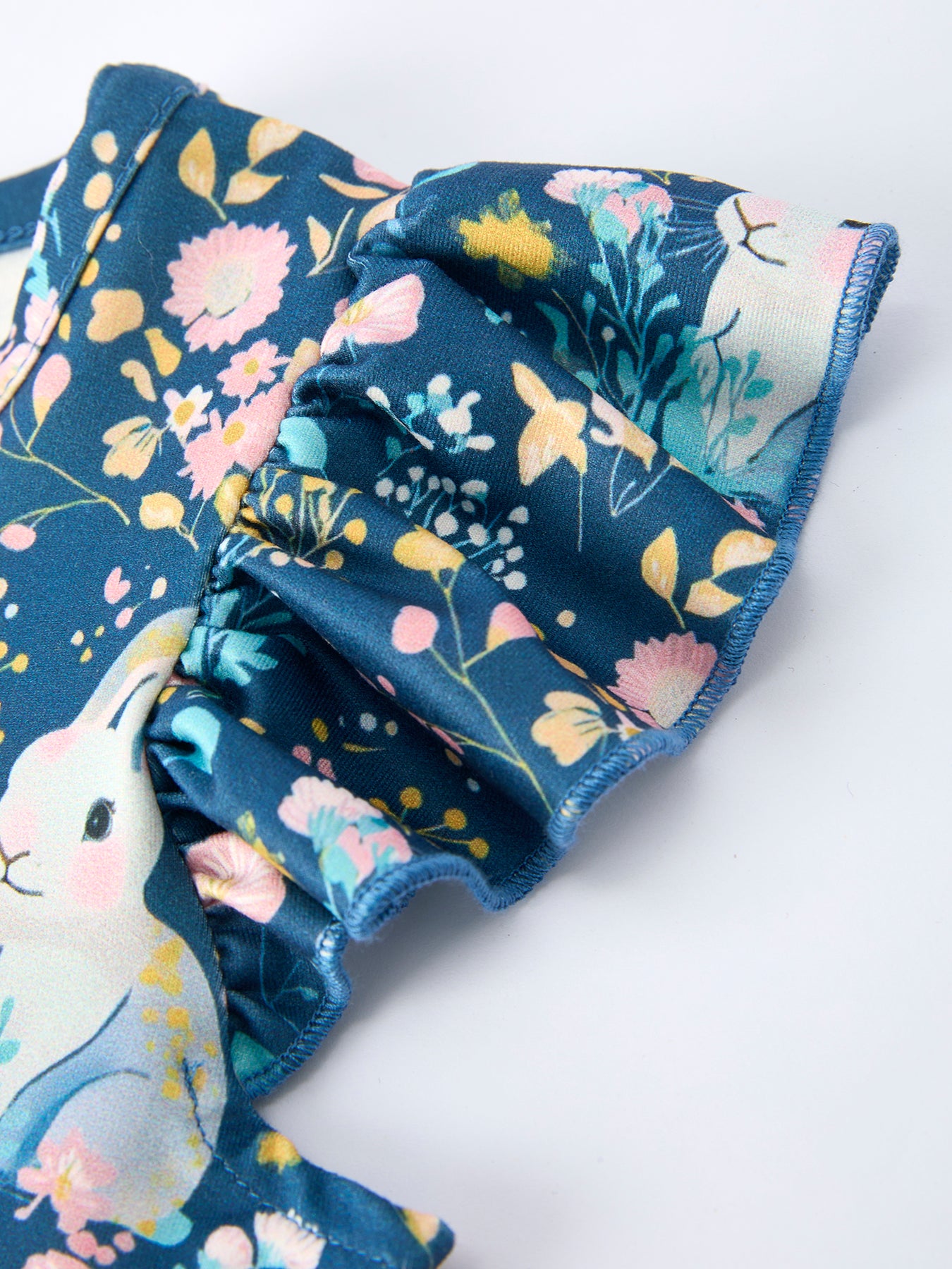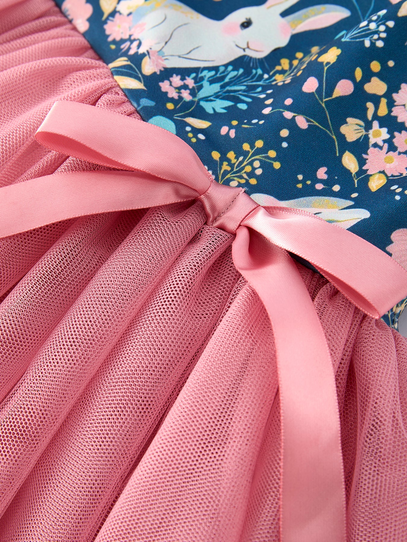 Teal Bunny Garden Tulle Dress Ruffle Sleeve