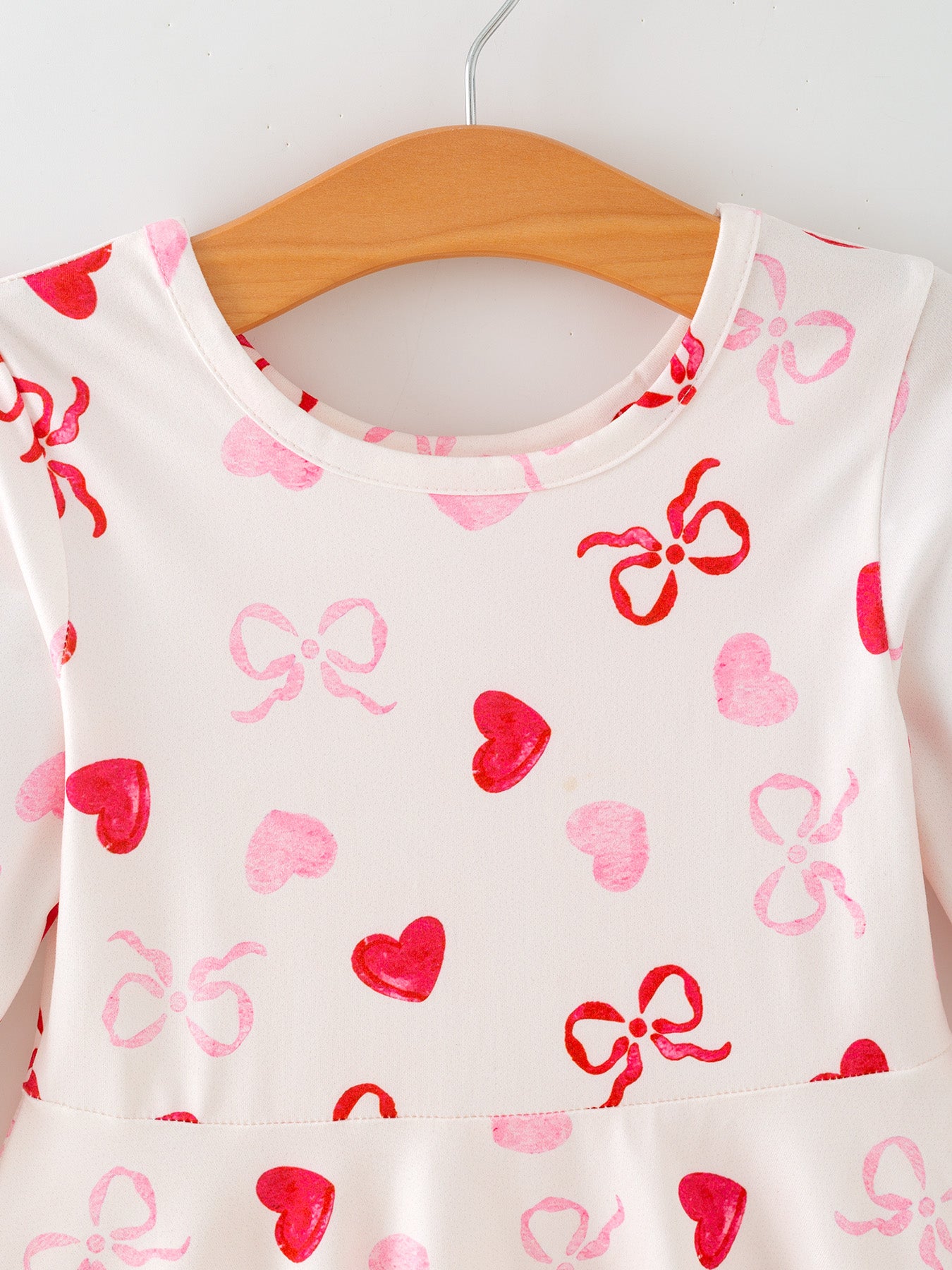Toddler Girls Valentine Bow Heart Shape Print Dress