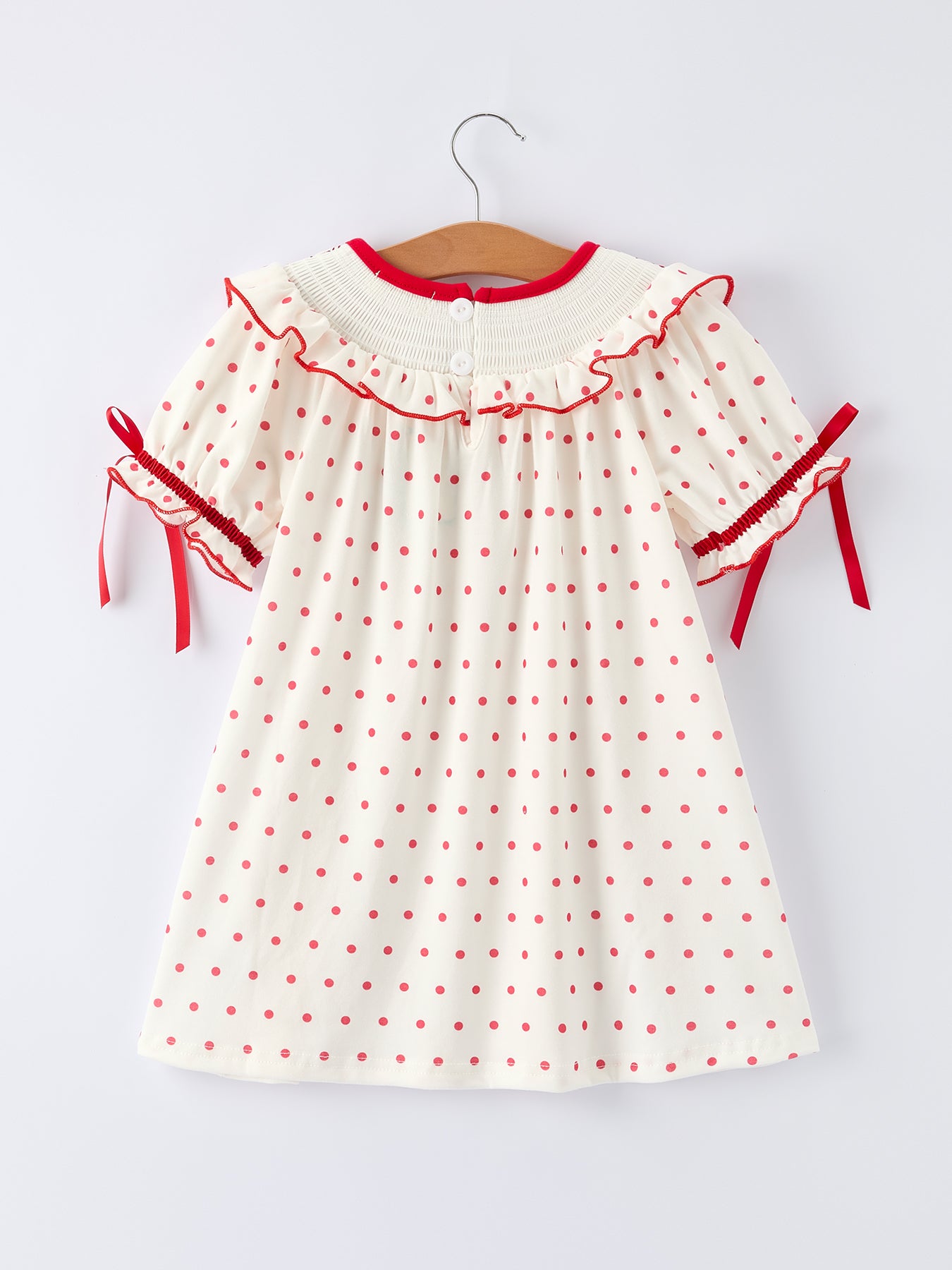 Valentine's Day Polka Dot Girls' Dress with Smocking Embroidery